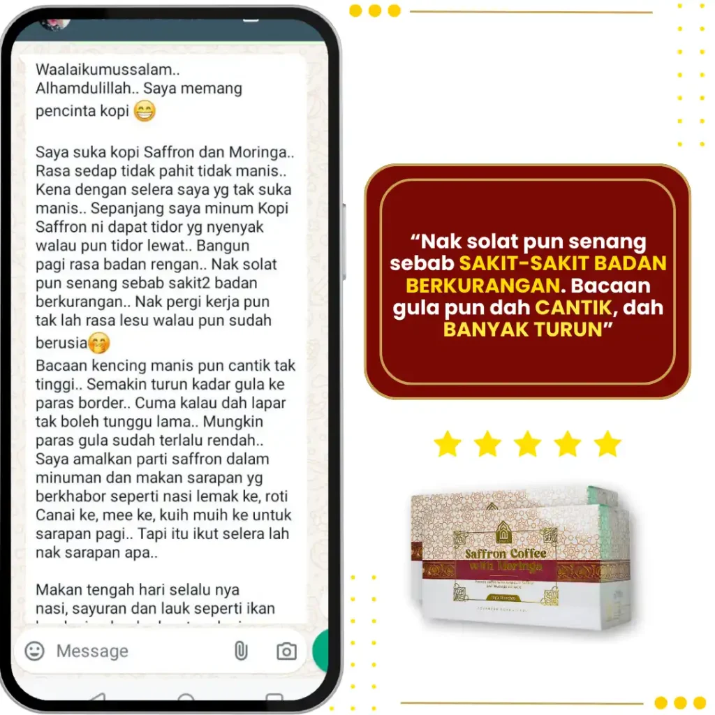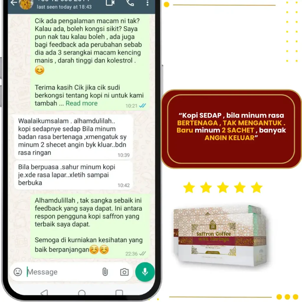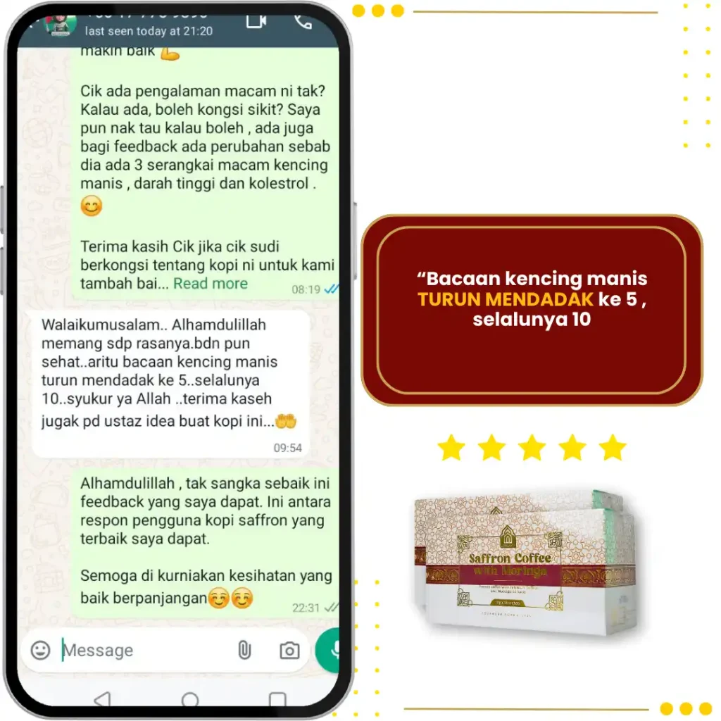 Mengikut Kajian Pakar & Doktor, Pengambilan 3 KOTAK Kopi Saffron Dengan Ekstrak Moringa Secara Konsisten Membantu Menstabilkan Bacaan Gula, Kolesterol, dan Tekanan Darah Dalam Masa 6 Minggu.